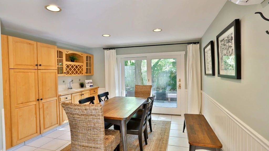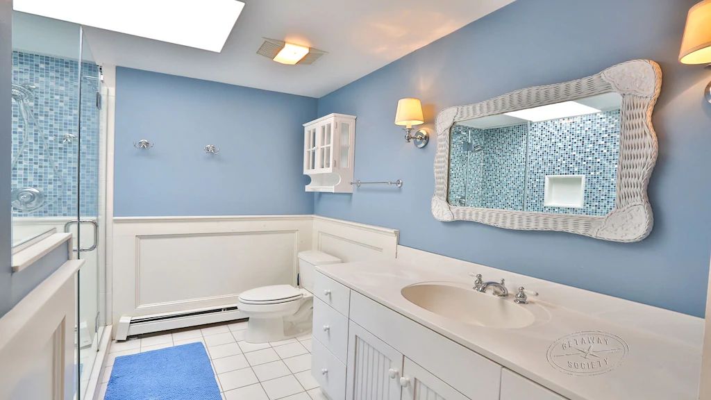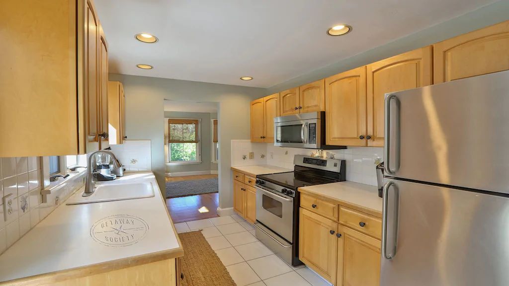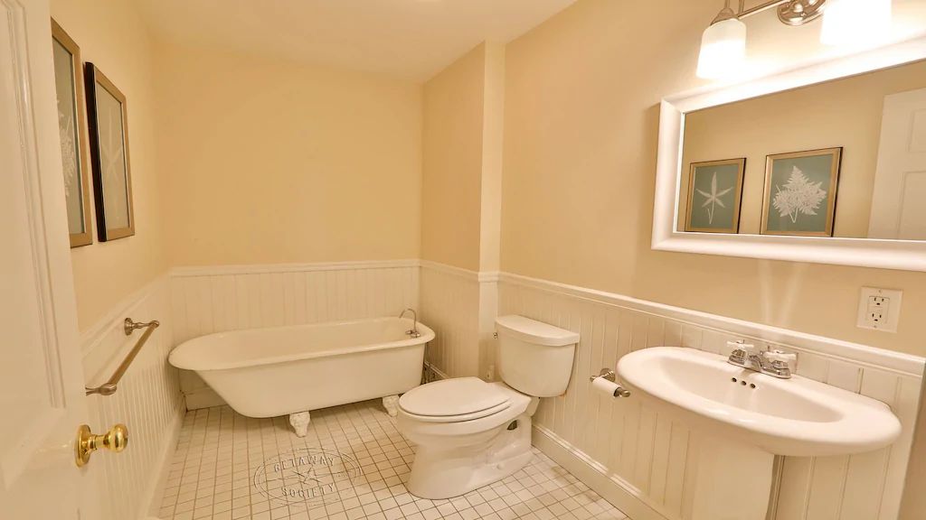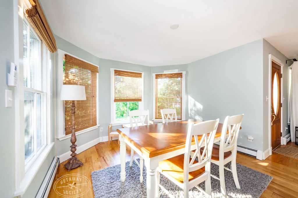 This air-conditioned home has an eat-in-kitchen and separate dining room that can accommodate up to 9 guests. The living room is accented by a 40-inch Samsung SmartTV, and a charming beach stone fireplace. Downstairs you will find a finished basement with 48-inch SmartTV, a sofa, ping pong table, and an arcade machine – perfect for kids and rainy day activities.