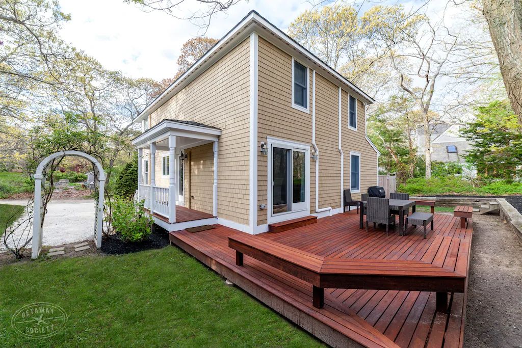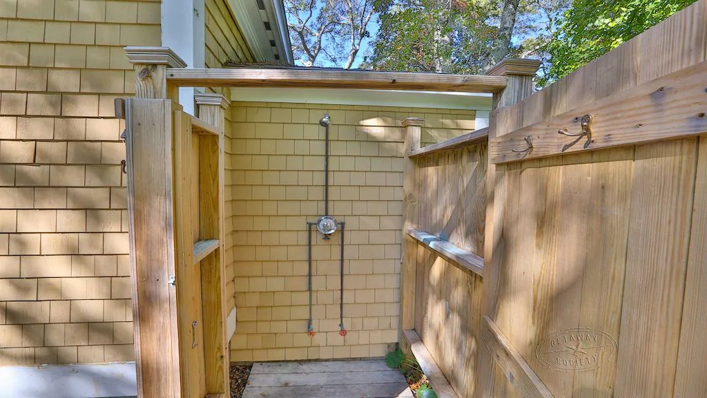 The front porch is equipped with rocking chairs perfect for a quiet afternoon reading or relaxing. Outside is a large deck, Weber gas grill, and a backyard, and a hammock, which provides a great environment for cookouts and gathering with friends and family. An outdoor shower enables you to rinse off after a long day at the beach. There is ample parking for three cars in the driveway. This is a quintessential Martha’s Vineyard vacation home!