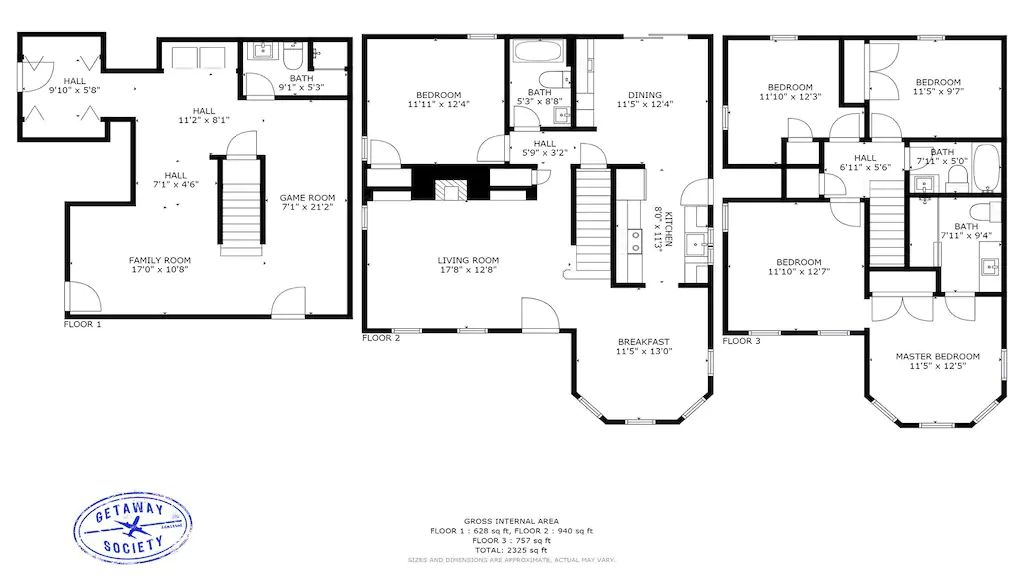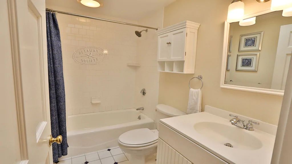 The spacious master en suite features a warm blue color decor, 40-inch Samsung SmartTV, and a separate attached room that makes for a great nursery and the bathroom features a mosaic-tiled shower. The first floor bedroom has a queen bed, Samsung SmartTV, and a bathroom right outside the door. The two upstairs bedrooms each have two twin beds, including one with a trundle, and share a full bathroom. The twin beds can also be converted into king beds.
