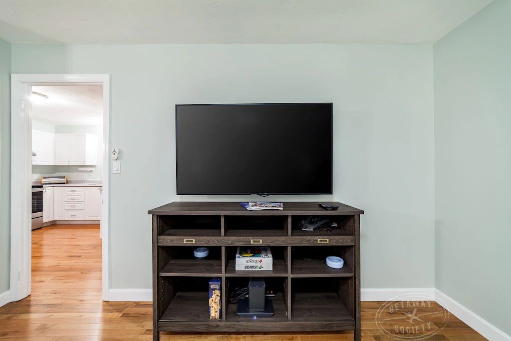 Upon entering you’ll be greeted by a den and large living room, the perfect gathering place for family and friends. The living room is accented by a 58-inch Samsung SmartTV. The master bedroom features a king bed, walk-in closet, en suite bathroom, and 43-inch Samsung SmartTV. There is also a queen bedroom with 32-inch Samsung SmartTV, and another bedroom with a full bed and a twin bed, which share the full hallway bathroom. There is additional sleeping space for an air mattress in the third bedroom.